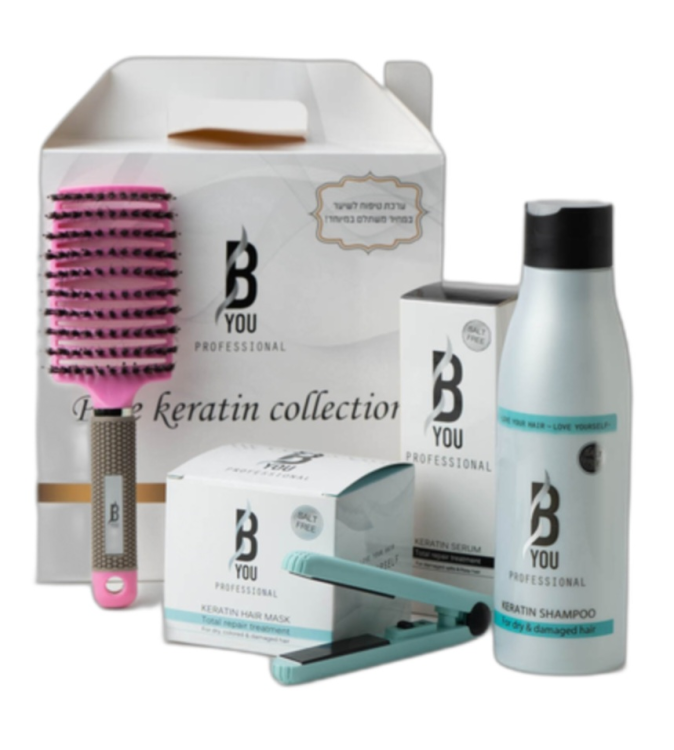 בי-יו מארז טיפוח לשיער שמפו 750 מ"ל, מסכה 500 מ"ל, סרום 120 מ"ל, מברשת להתרת קשרים ומיני מחליק שיער (M-1)
