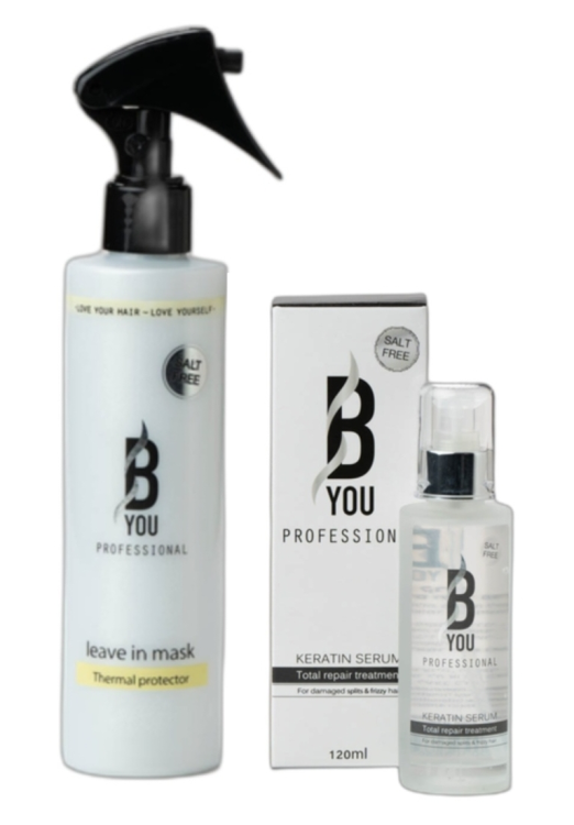 בי-יו סט טיפולי לשיקום השיער – מסכה ללא שטיפה 250 מ"ל וסרום קרטין 120 מ"ל