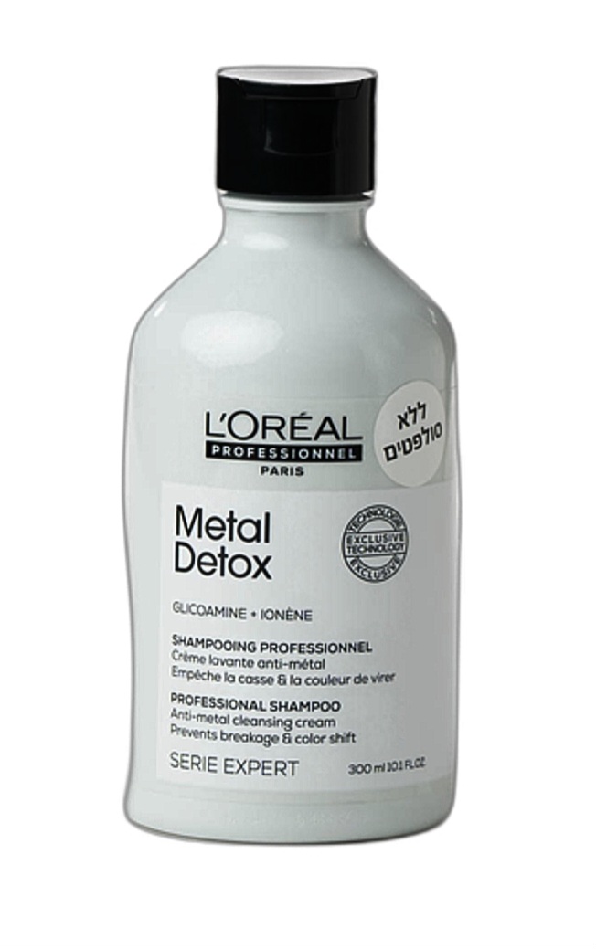 שמפו מקצועי מסדרת Serie Expert של L’Oréal Professionnel, המיועד להסרת שאריות מתכות מהשיער ולשמירה על בריאותו. מתאים לכל סוגי השיער וצבעי השיער, במיוחד לאחר טיפולי צביעה, הבהרה או שימוש במים עשירים במינרלים.